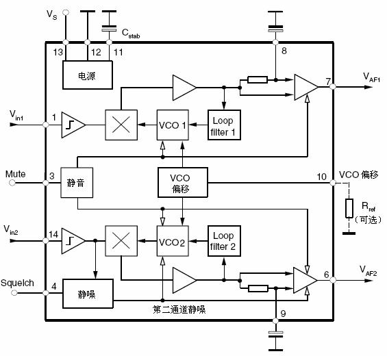 雙通道,免調(diào)試PLL FM 解調(diào)器,能自動(dòng)鎖定在所接收的伴音載波上;