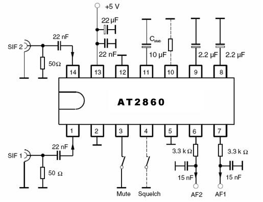 U2860是一款雙通道FM 伴音解調(diào)器,能有效地處理所有TV FM 標(biāo)準(zhǔn),即從4.5MHz 到6.5MHz(包括標(biāo)準(zhǔn)的M,B/G,I 以及D/K 制式).包含兩路相同的電視伴音中頻通道,每一通路含有一個(gè)限幅放大器,PLL FM 解調(diào)器和一個(gè)音頻放大器。而且,電路還含有一靜躁功能、靜音開關(guān)以及內(nèi)部穩(wěn)壓模塊。該電路工作時(shí)無需調(diào)試,同時(shí)所需外圍元器件少,采用5 伏電源,可用于TV 、VCR 以及其他多媒體用途中。AT2860與其管教兼容。
