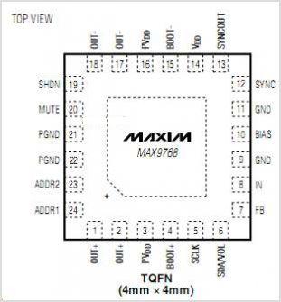MAX9768具有高達(dá)77dB的PSRR、低至0.08%的THD+N和高達(dá)97dB的SNR?煽康亩搪泛蜔徇^(guò)載保護(hù)防止故障狀態(tài)下器件損壞。MAX9768采用24引腳薄型QFN-EP (4mm x 4mm x 0.8mm)封裝,工作于-40°C至+85°C擴(kuò)展級(jí)溫度范圍。