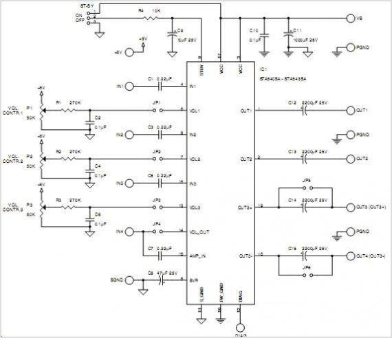 STA543SA帶DC音量控制2.1聲道(24Wx1+7Wx2)CLASS-AB類音頻功率放大器IC電路特點(diǎn)及應(yīng)用原理圖介紹