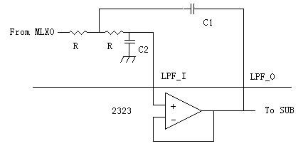 PT2323內(nèi)置副低頻分頻器的正向OP緩沖器,因此和外部RC元件配合就可以接成SalleoK型式的低通濾波器,如下圖: