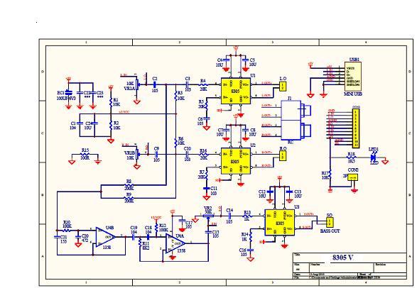 8305 便攜式2.1聲道小音箱應(yīng)用原理圖