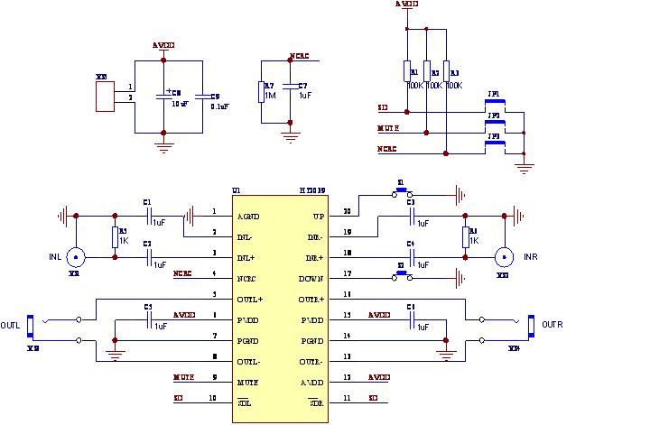 1、 D類功放EMI干擾主要是輸出端引線產(chǎn)生的,所以周邊器件(電容電阻)與HT6809 IC 輸出端引腳之間的引線應(yīng)該設(shè)計(jì)地盡可能的短,粗,以便于將EMI干擾降到最小。另一端與揚(yáng)聲器相連的引線最好也設(shè)計(jì)的粗一些,以便于降低輸出端導(dǎo)通電阻。