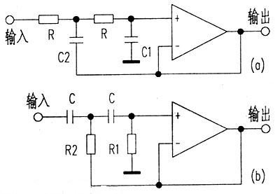 圖3是標(biāo)準(zhǔn)的巴特沃斯二階有源濾波器。圖3a為低通濾波器,其計(jì)算公式如下:
