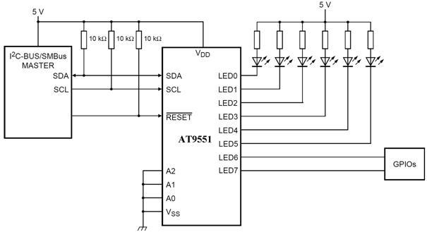 PCA9551/AT9551——8位的LED驅(qū)動器,具備閃光控制功能,也可以作為普通I/O擴(kuò)展器使用PCA9551/AT9551為背光和RGB混色應(yīng)用提供驅(qū)動8個并聯(lián)LED的能力。這個器件也可以單獨開啟、關(guān)閉或閃爍每個LED(閃爍頻率有兩種可編程方案可選),芯片內(nèi)部集成振蕩器電路,具有可編程的閃光控制驅(qū)動功能。此外,該器件還可以通過I2C 或 SMBus接口實現(xiàn)傳感器控制,電源開關(guān),開關(guān)按鈕和狀態(tài)指示照明等功能。PCA9551/AT9551二者管教兼容。