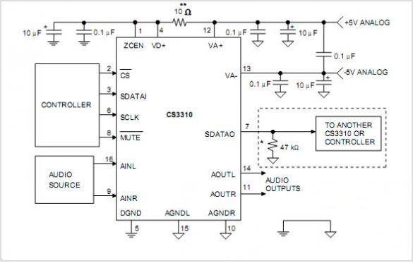 CS3310采用16位串行接口的立體聲數(shù)字音量控制器IC的主要功能及應(yīng)用電路說(shuō)明