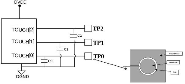 8. 可通過改變C0、C1、C2的電容來調(diào)整觸摸靈敏度,電容越小靈敏度越高。其取值范圍為0pf~50pf。
