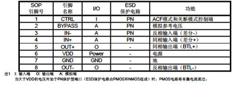 (2)單端輸入,ACF-1 固定模式應(yīng)用,或 ACF-2 固定模式應(yīng)用。通過打開開關(guān)S1進入SD關(guān)斷模式;若不需SD低功耗應(yīng)用,可去掉開關(guān)S1。(請根據(jù)預(yù)置模式和VDD電壓設(shè)置不同RCTRL1和RCTRL2值)