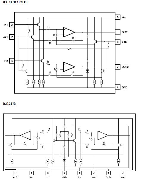 D3121,D3121F及 D3121N是一塊對地能動沖放大器集成電路,該電路能有效消除由線路電阻所引起的問題及噪聲。所需外圍電容小,便于設(shè)計時小型化的同時可靠性不降低。廣泛應(yīng)用于車載音響系統(tǒng)內(nèi)。 D3121系列采用DIP8、SOP8、SIP8的封裝形式。管教完全兼容BA3121。