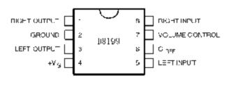 D8199 是一塊立體聲放大直流音量控制電路。廣泛應用于音頻放大器遠程控制、電子游戲機和CATV(光纖電視)音頻的控制。   采用DIP8的封裝形式。管教兼容TDA8199 。