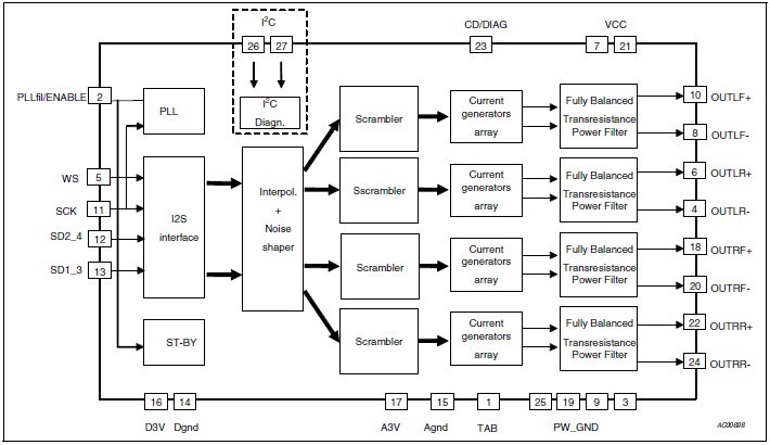TDA7801是ST的全新車用數(shù)字音頻功率放大器系列的首款產(chǎn)品,意法半導(dǎo)體正在增加該系列產(chǎn)品的新成員:包括TDA7801的 Class-SBi版(ST擁有專利的能效類產(chǎn)品,功耗達(dá)到除了Class D以外的最低水平),和一款突破性的數(shù)字輸入Class D放大器解決方案,進(jìn)一步降低功耗。