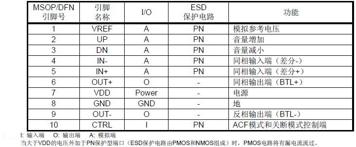 其中ZIN為放大器輸入阻抗。為了減小pop噪聲, 輸入信號源內(nèi)阻可適當(dāng)調(diào)整,同時(shí)輸入隔直電容(CIN)設(shè)置為0.1μF或更小。