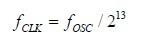 其中fOSC為內(nèi)部振蕩器頻率,實(shí)際測試值為216KHz左右,fCLK典型值為26.4Hz(cycle=38ms)。