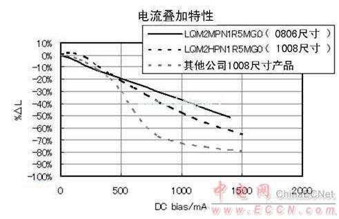 通過直流電流后感值偏執(zhí)特性良好,可以作為各功率電感的特長。電流-感值偏執(zhí)特性是指功率電感通電時,電流變大引起感值下降的性質(zhì)。這是疊層型功率電感的封閉磁路構(gòu)造導致的磁通量飽和引起的,因此為了克服這個弱點,開發(fā)新技術(shù)以降低疊層鐵氧體中的磁通量分布,從而改善電流的疊加特性,最后反映在各個產(chǎn)品上。