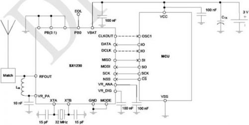 SX1230可用在RKE,遙控和安全系統(tǒng),語音和數(shù)據(jù)RF通信鏈接,過程以及建筑物/家庭控制、RFID和自動(dòng)抄表等。