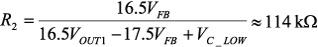 對于VOUT1 = 1.2 V, VOUT2 = 1.0 V, VFB = 0.8 V, VC_LOW = 3.3 V, VC_HIGH  = 0 V, 和 R1= 49.9 kohm, R2 and R3可以如下計算