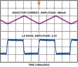 該振蕩以不確定的頻率(大約為3MHz)持續(xù)進行,但是在必要的情況下可以響應(yīng)線路和負(fù)載的瞬態(tài)變化而偏離該頻率,以便輸出電壓保持恒定,并且使電感電流的平均值保持在輸出負(fù)載所需要的電流值。