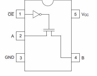 The HD74CBT1G125 features a single high-speed line switch. The switch is disabled when the output enable (OE) input is high.
