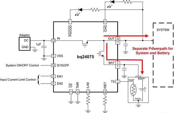電池充電器的一般方法是將系統(tǒng)直接連接到電池,讓充電器同時為電池和系統(tǒng)供電。然后,對系統(tǒng)的總電流進行穩(wěn)壓,這樣做存在幾個問題。特別是低電池電量啟動、終止干擾和早期計時器超時等問題。電源路徑管理通過對電池電流和系統(tǒng)電流進行分別監(jiān)測,消除了這些問題[2]。