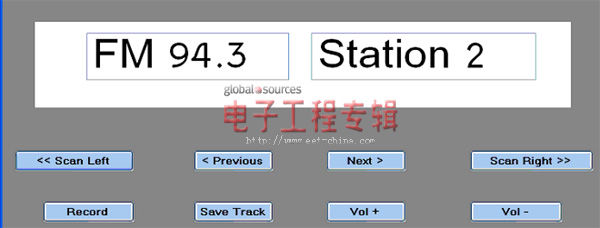 主機(jī)運(yùn)行一個(gè)用于控制音頻接收器的前端應(yīng)用。如果主機(jī)運(yùn)行的是Android操作系統(tǒng),則可以用標(biāo)準(zhǔn)的Java和Android庫創(chuàng)建簡(jiǎn)單的GUI。如果是Windows平板電腦,則可以用C# GUI完成同樣的工作。用戶通過按鈕等控制對(duì)象能夠?qū)崿F(xiàn)頻道選擇、加減頻道等操作。