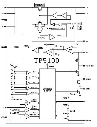 TP5100是一款開關(guān)降壓型雙節(jié)8.4V/單節(jié)4.2V鋰電池充電管理芯片。其QFN16超小型封裝與簡單的外圍電路,使得TP5100非常適用于便攜式設(shè)備的大電流充電管理應(yīng)用。同時(shí),TP5100內(nèi)置輸入過流、欠壓保護(hù)、芯片過溫保護(hù)、短路保護(hù)、電池溫度監(jiān)控、電池反接保護(hù)。TP5100具有5V-18V寬輸入電壓,對(duì)電池充電分為涓流預(yù)充、恒流、恒壓三個(gè)階段,涓流預(yù)充電電流、恒流充電電流都通過外部電阻調(diào)整,最大充電電流達(dá)2A。TP5100采用頻率400kHz的開關(guān)工作模式使它可以使用較小的外圍器件,并在大電流充電中仍保持較小的發(fā)熱量。TP5100內(nèi)置功率PMOSFET、防倒灌電路,所以無需防倒灌肖特基二極管等外圍保護(hù)。