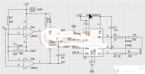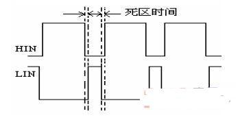 PWM 經同相和反相比較器后,經電阻R29 和R30 的上拉分別對電容C12、C13 充電產生延時,使得兩路PWM 具有對稱互補性且具有一定的死區(qū)間隔,保證主回路中兩開關管不會同時導通。在電路中HIN 和LIN 標號端得到的波形圖如下圖10 所示。