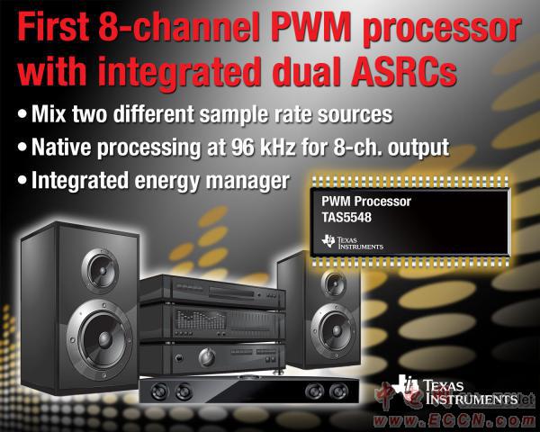 TAS5548 的 40kHz 音頻帶寬不但符合 Dolby®True HD 與 DTS-HD 標(biāo)準(zhǔn),而且還可實(shí)現(xiàn)無(wú)與倫比的多通道性能。設(shè)計(jì)人員可通過(guò)豐富的音頻處理功能優(yōu)化產(chǎn)品,如 7 頻帶參數(shù)均衡 (EQ)、高低音控制、音量及響度控制、動(dòng)態(tài)范圍壓縮 (DRC) 以及輸入輸出混合等。