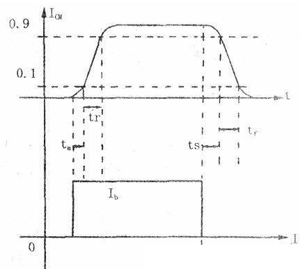 為了研究三極管開/關(guān)此瞬間過程,首先對開/關(guān)的相對值作一規(guī)定,即當(dāng)集電極電流達到其最大飽和電流90%時,認(rèn)定它已接通,而集電極電流下降為I。的10%時,認(rèn)為它已經(jīng)斷開。按此標(biāo)準(zhǔn)計量,三極管開/關(guān)過程所需時間作為衡量三極管的開關(guān)特性的比較標(biāo)準(zhǔn)。