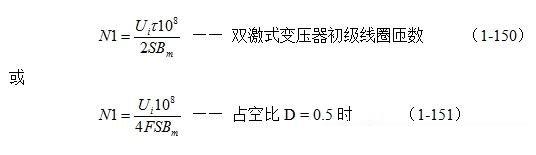 (1-176)式就是計(jì)算半橋式逆變開(kāi)關(guān)電源變壓器初、次級(jí)線圈匝數(shù)比的公式。式中,N1為變壓器初級(jí)線圈N1繞組的匝數(shù),N2為變壓器次級(jí)線圈的匝數(shù),Uo輸出電壓的有效值,Ui為直流輸入電壓,Upa輸出電壓的半波平均值。