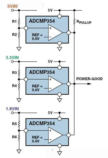 基于比較器的欠壓檢測,提供通用電源良好輸出,可用于3路電源系統(tǒng)