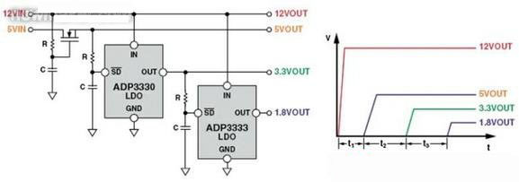 這種簡單、低成本的電源時(shí)序控制方法只占用很少的電路板面積,因此可用于多種應(yīng)用。這種方法適合于成本是主要考慮因素、時(shí)序要求很簡單,且時(shí)序控制電路的精確性不是十分重要的系統(tǒng)。