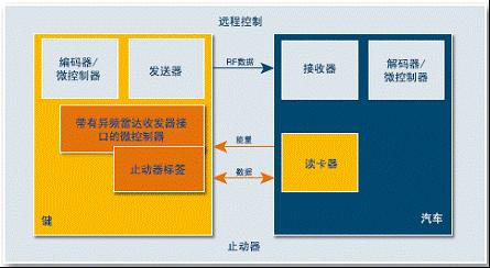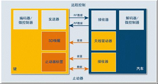 單向R F頻段無線通訊用于遙控開關車門功能。防盜鎖止系統(tǒng) (ImmobilizerSystem) 內建有采用 AUT64 加密算法可實現(xiàn)雙向LF頻段無線通訊認證。