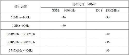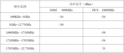 以下四張表是在四種模式下 GSM 標(biāo)準(zhǔn)規(guī)定的雜散發(fā)射功率限值: