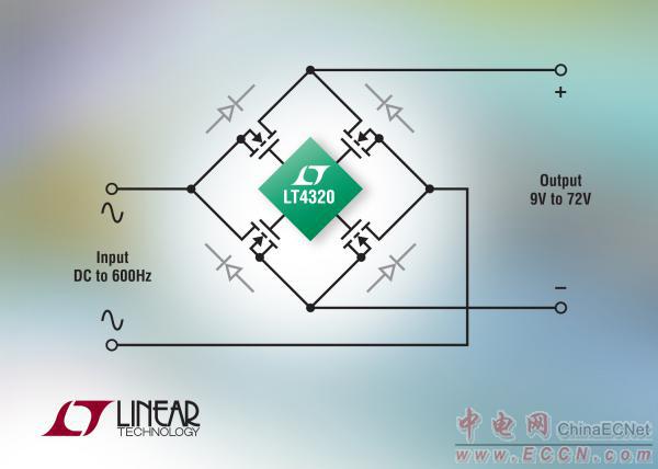 LT4320 用于9V至72V系統(tǒng)的理想二極管橋控制器