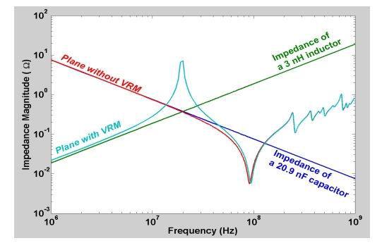 圖3:包括和不包括電源整流模塊的平板對(duì)輸入阻抗。