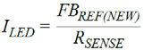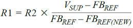 電阻分壓器的必需值可以使用公式1計算,其中VSUP是輔助調(diào)節(jié)電壓, FBREF(NEW)是RSENSE兩端的目標電壓。