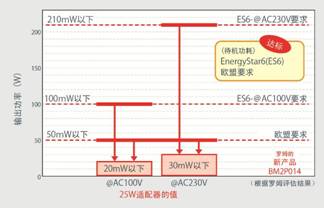 此次內(nèi)置的超級結(jié)MOSFET耐壓達650V,是實現(xiàn)了低導(dǎo)通電阻(SOP-8也僅4.0Ω)、低柵極電荷(Qg)及高速開關(guān)的功率MOSFET。待機功耗遠遠低于國際標準Energy Star 6.0要求的100mW以下,用于25W的適配器時,AC100V時僅為20mW以下,AC230V時僅為30mW以下。通過優(yōu)化外圍部件,有望進一步降低功耗。