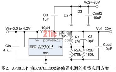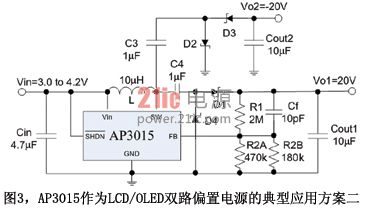 AP3015/A在便攜式數(shù)碼產(chǎn)品的顯示模塊中作為偏置電源或背光驅(qū)動電源有著廣泛的應用。下面分別介紹了AP3015的性能以及設計偏置電源和WLED背光電源的典型應用方案,最后著重說明在設計這些方案時的關鍵參數(shù)。
