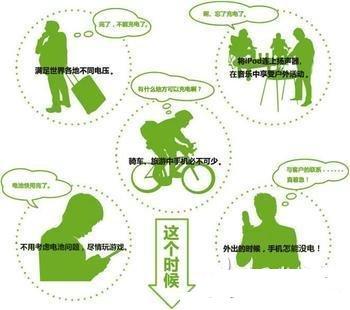 旅游市場:戶外自助游、商務(wù)人士外出,對通訊、攝像、音樂、娛樂等應(yīng)用功能隨時隨地有需求,在旅途過程中的持續(xù)供電成為共有的瓶頸。