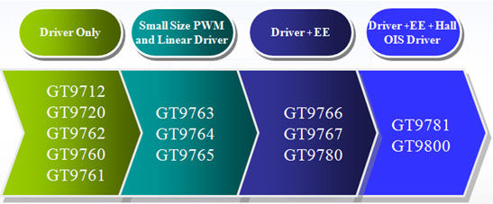 經(jīng)過2年多的設(shè)計,GT擁有多種美國和中國專利的VCM DRIVER IC橫空出世。與其他競爭對手相比,聚辰不但有與之Pin對Pin替換的產(chǎn)品:比如GT9760,GT9762,GT9720等;也有自己特色的DRIVER IC,比如:GT9761在自動對焦速度提高10倍以上的同時,還能容忍±40%的VCM本征頻率誤差,最大限度的提高手機(jī)攝像頭模組的生產(chǎn)良率;擁有業(yè)界同類最小體積的GT9766集成了16K BITS的數(shù)據(jù)存儲器(EEPROM),降低了高端手機(jī)攝像頭模組的BOM成本。目前,GT VCM DRIVER IC已經(jīng)得到多個行業(yè)標(biāo)桿企業(yè)的采用。