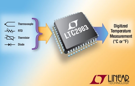 Linear推出高性能數(shù)字溫度測量 IC LTC2983,該器件以 0.1°C 的準(zhǔn)確度和 0.001ºC 的分辨率直接實(shí)現(xiàn) RTD、熱電偶、熱敏電阻器和外部二極管的數(shù)字化。高性能模擬前端整合了低噪聲、低漂移緩沖 ADC 和每個(gè)傳感器所有必需的激勵(lì)及控制電路。測量是在數(shù)字引擎控制的情況下進(jìn)行,結(jié)合每個(gè)要求的所有算法和線性化功能。LTC2983提供了一個(gè)可與幾乎任何傳感器相連的多路復(fù)用型高精度接口。其可利用熱電偶進(jìn)行絕對微伏級信號(hào)的精確測量以及從 RTD 和熱敏電阻實(shí)施比例式電阻測量,對測量結(jié)果進(jìn)行線性化處理并以 ºC 或 ºF 為單位輸出結(jié)果?商峁┒噙_(dá) 20 個(gè)模擬輸入,并能夠以攝氏度或華氏度為單位輸出數(shù)字化的測量結(jié)果。SPI 接口可與幾乎所有的數(shù)字系統(tǒng)配合工作,而一個(gè)具有下拉菜單的綜合型軟件支持系統(tǒng)則實(shí)現(xiàn)了 LTC2983 的簡易定制。