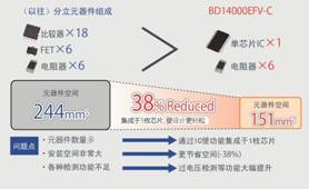在多年積累的ROHM模擬設(shè)計(jì)技術(shù)的基礎(chǔ)上,由日本貴彌功株式會(huì)社提供確定規(guī)格、樣品評(píng)估等方面的支持,使以往由20個(gè)以上分立元器件完成的EDLC電池平衡功能僅通過1枚芯片即可實(shí)現(xiàn),這實(shí)屬業(yè)界首創(chuàng)。元器件安裝空間可縮減約38%。