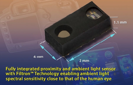Vishay推出新的全集成接近和環(huán)境光傳感器---VCNL4040。該傳感器采用Filtron™技術;其尺寸為業(yè)內最小,只有4mm x 2mm x 1.1mm;包括一個紅外發(fā)射器、接近和環(huán)境光的光探測器、信號處理IC和16位ADC。這顆三合一傳感器有一個中斷功能,支持I2C總線通信接口,能大大簡化各種各樣消費類應用里的窗口和傳感器放置問題。