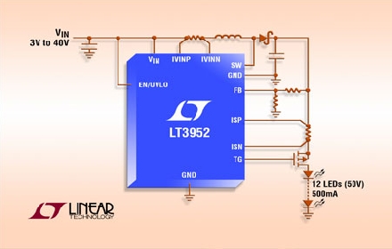 LT3952 可用標稱的 12V 輸入驅動多達 16 個 350mA 白光 LED,從而提供超過 15W 功率。該器件包括高壓側電流檢測,允許其以升壓模式、降壓模式、降壓-升壓模式或 SEPIC 拓撲工作。內部的擴展頻譜頻率調制最大限度減輕了 EMI 問題。LT3952 在升壓拓撲時提供超過 94% 的效率,因此無需外部散熱措施。其內部 LED 短路保護在大多數(shù)應用中實現(xiàn)了更高的可靠性。頻率調節(jié)引腳允許用戶設定開關頻率在 200kHz 至 3MHz,從而優(yōu)化了效率,同時最大限度減小了外部組件尺寸和成本。LT3952 在纖巧的解決方案占板面積提供了超過 90% 的效率,同時以 2MHz 頻率切換。該器件采用耐熱增強型 TSSOP-28E 封裝,提供了非常緊湊的大功率 LED 驅動器解決方案。