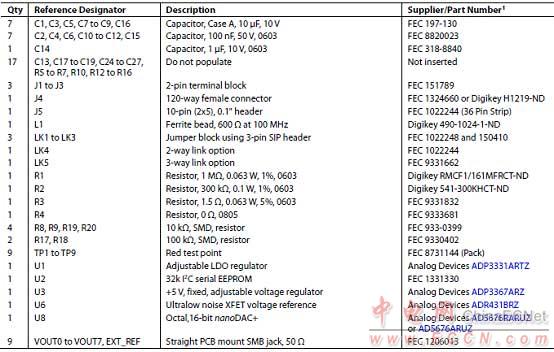 評(píng)估板EVAL-AD5676SDZ/EVAL-AD5676RSDZ材料清單: