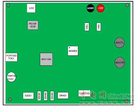 AKM公司的AK4432是用于數(shù)字音頻系統(tǒng)的32位立體聲數(shù)模轉(zhuǎn)換器(DAC),集成了32位高音質(zhì)低群時延的數(shù)字濾波器,THD+N為91dB,128倍過取樣,主要用在汽車和家庭影院音頻環(huán)繞聲系統(tǒng).本文介紹了AK4432主要特性,框圖,以及評估板AKD4432-SA功能,框圖,元件分布圖和電路圖.