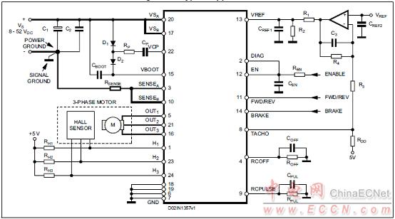 ST公司的L6235是集成了過流保護的3相DMOS馬達驅(qū)動器,包括3相DMOS橋,常關時間PWM電流控制器和用來驅(qū)動單端霍爾傳感器的譯碼邏輯,工作電壓8-52V,輸出峰值電流5.6A,工作頻率高達100kHz,具有多種保護功能.本文介紹了L6235主要特性,框圖,應用電路圖和應用電路材料清單,三相BLDC馬達驅(qū)動板EVAL6235PD主要特性,電路圖,材料清單和PCB設計圖.