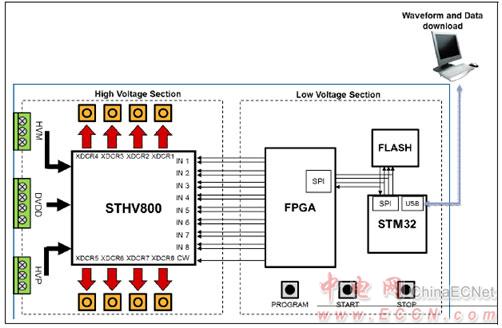 ST公司的STHV800是大容量超聲波發(fā)送器,每路有兩個獨(dú)立的半橋,輸出電壓0- ±90 V,輸出電流±2 A,由外部時鐘可同步輸入信號,工作頻率高達(dá)20MHz,主要用在醫(yī)用超聲波圖像,脈沖波形發(fā)生器,NDT超聲波發(fā)送,壓電變送器驅(qū)動等.本文介紹了超聲波系統(tǒng)框圖,STHV800主要特性,內(nèi)部框圖,評估板STEVAL-IME009V1主要特性,硬件框圖,電路圖和材料清單.