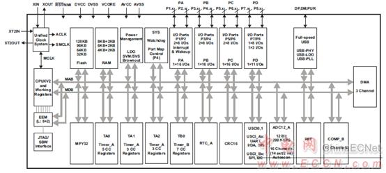 圖1  MSP430F5529框圖