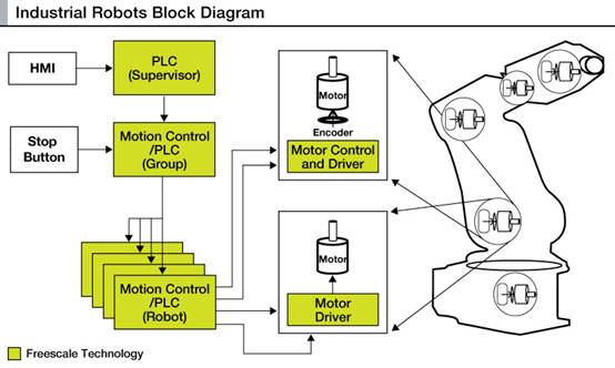 工業(yè)機器人是復(fù)雜的系統(tǒng),配備傳感器,機械手,電機和運動控制裝置,已廣泛應(yīng)用于各種自動化任務(wù),包括焊接,涂漆,裝配,拾放,包裝,產(chǎn)品檢驗和測試等.本文介紹了工業(yè)機器人所采用的雙核P5020和單核P5010處理器主要特性和框圖,以及工業(yè)機器人索賠采用的主要產(chǎn)品.